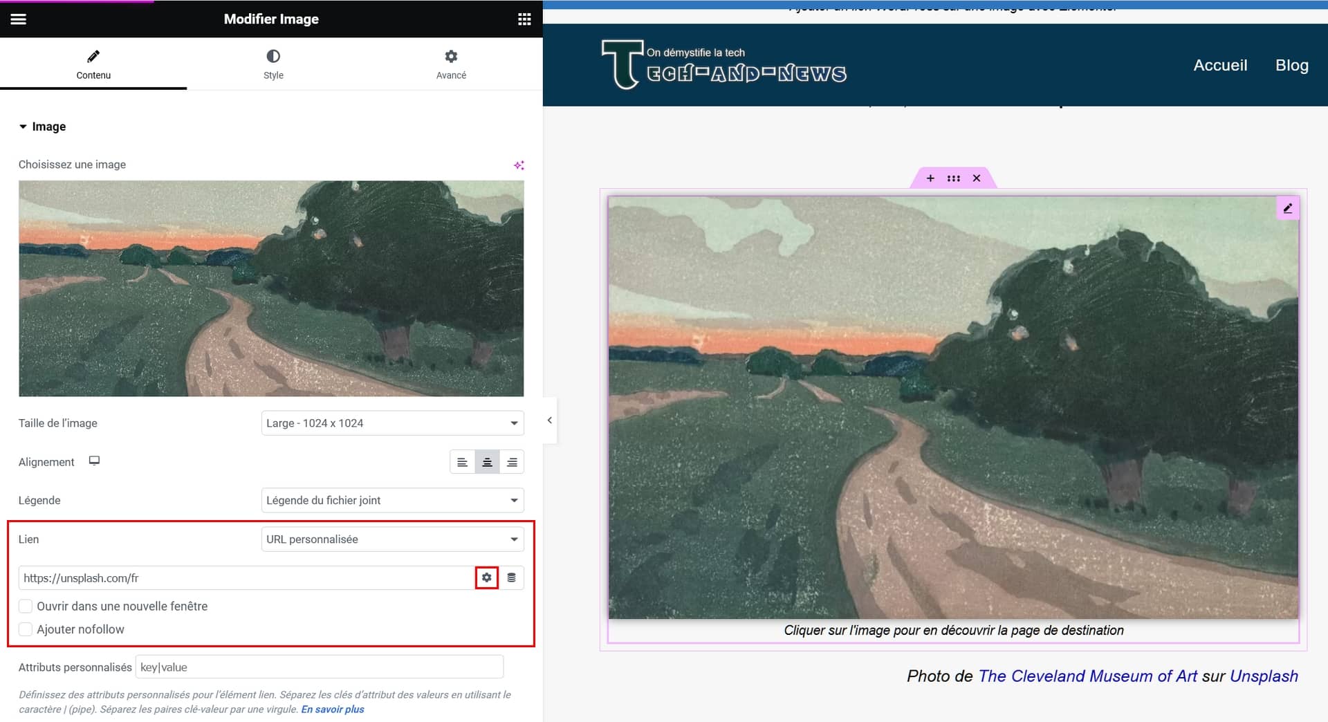 La procédure reste identique au même titre que l’ajout d’un lien sur un texte du bloc paragraphe.