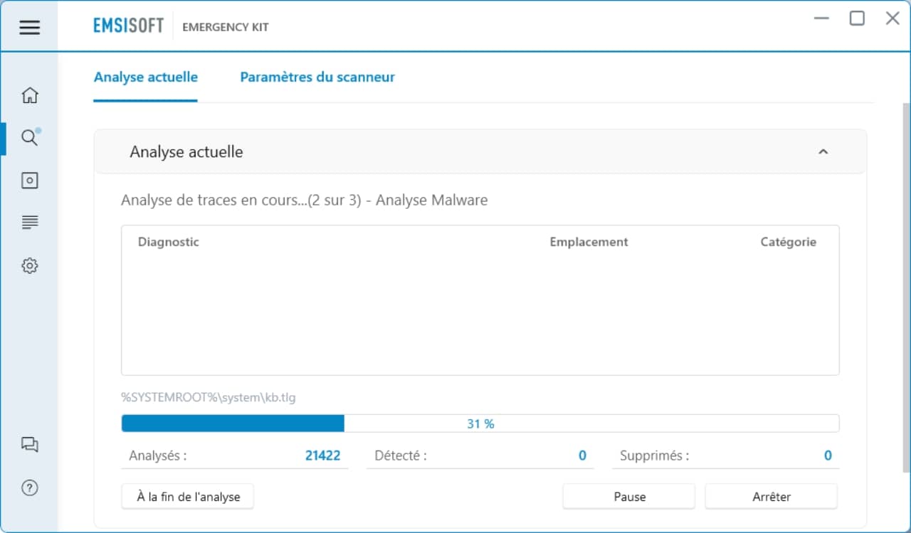 Effectuer une analyse avec Emsisoft Emergency Kit