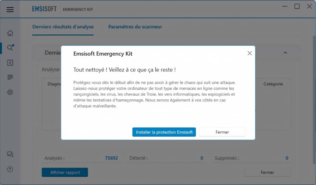Quant à Emsisoft Emergency Kit, il nécessite tout de même la copie de ses fichiers dans un dossier pour fonctionner.