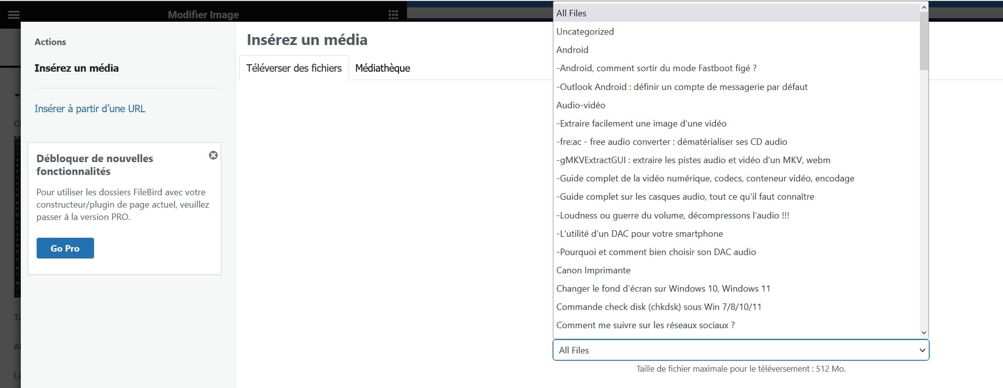 Pour ceux qui n’utilisent que Gutenberg, FileBird, ne vous oblige en rien à passer à la version pro. Ce n’est pas la même pour Elementor, mais pas rédhibitoire pour autant.
