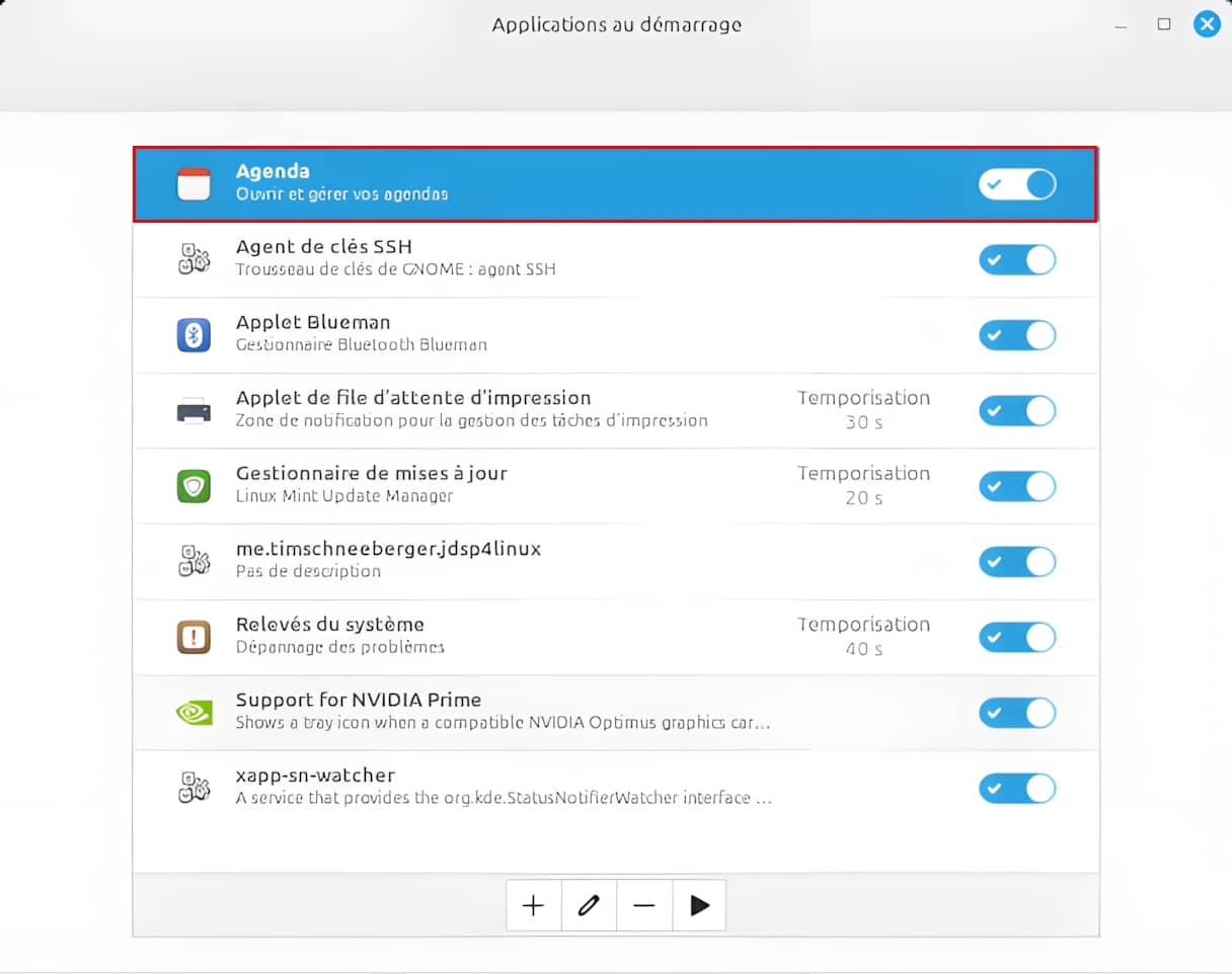 Comme vous pouvez le voir, l'agenda a bien été ajouté et s'exécutera désormais à chaque démarrage de Mint.