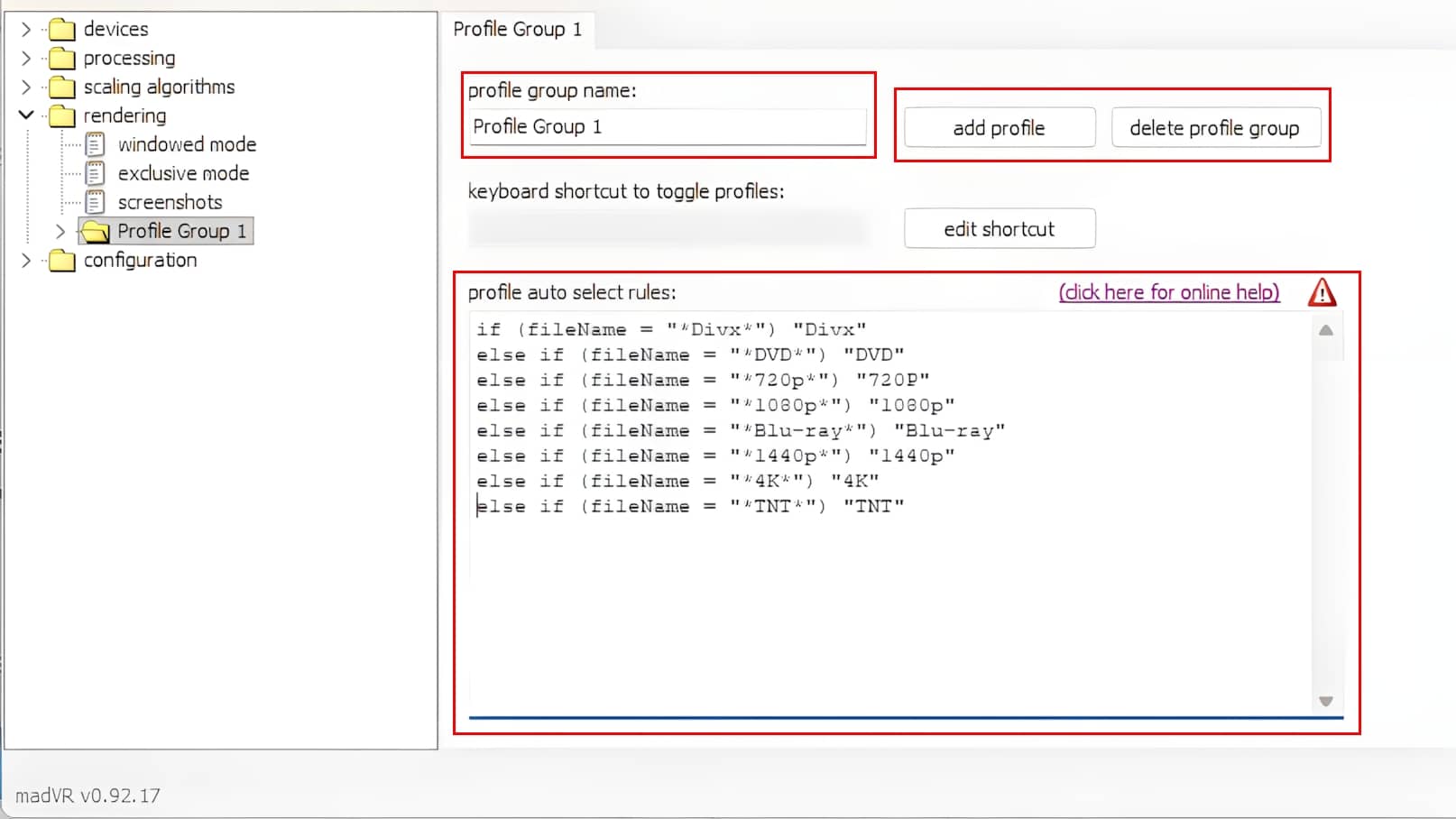 Configurer les profils de MadVR