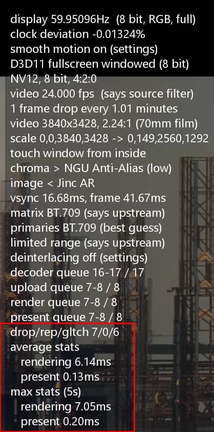 Lors de la lecture, un appui simultané des touches Ctrl + j, fait apparaitre les informations liées à la lecture de votre vidéo et au traitement up ou downscaling.
