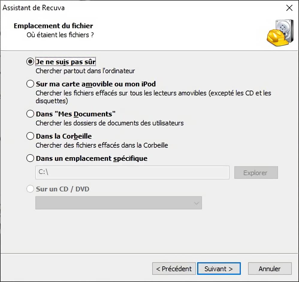 Recuva, l’assistant de récupération