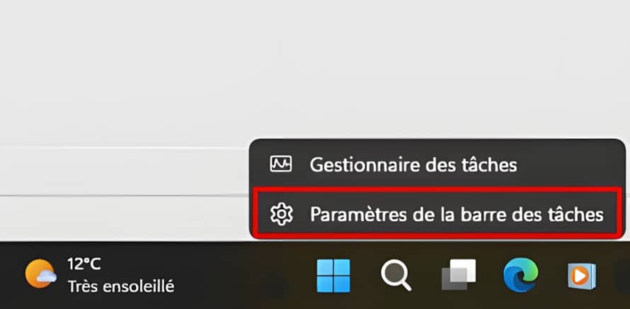 - puis cliquer sur Paramètres de la barre des tâches,