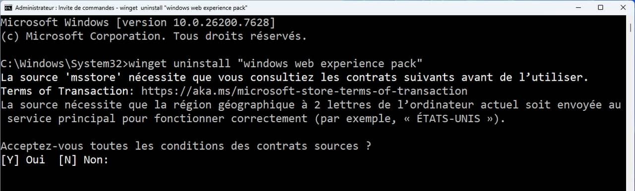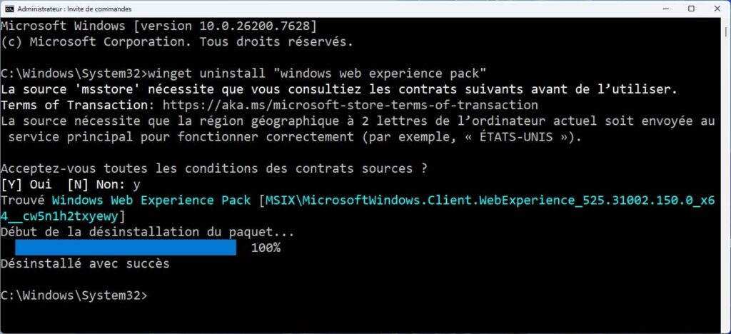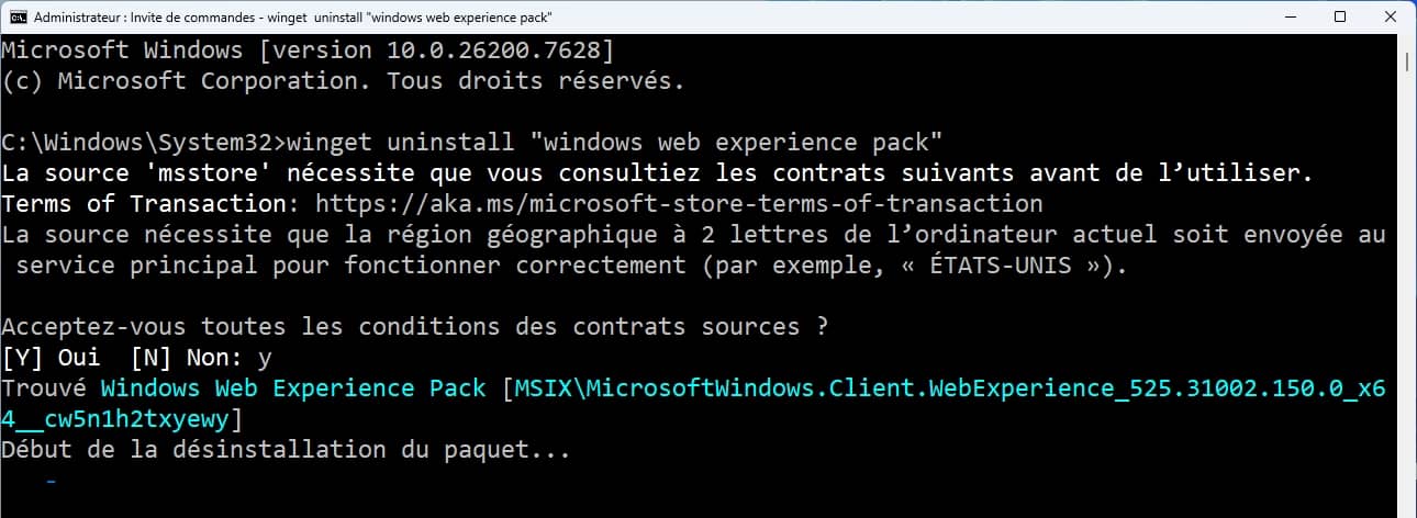 Pour complètement procéder à sa suppression, exécuter cette commande dans l’Invite de commandes ou le terminal en tant qu’administrateur.