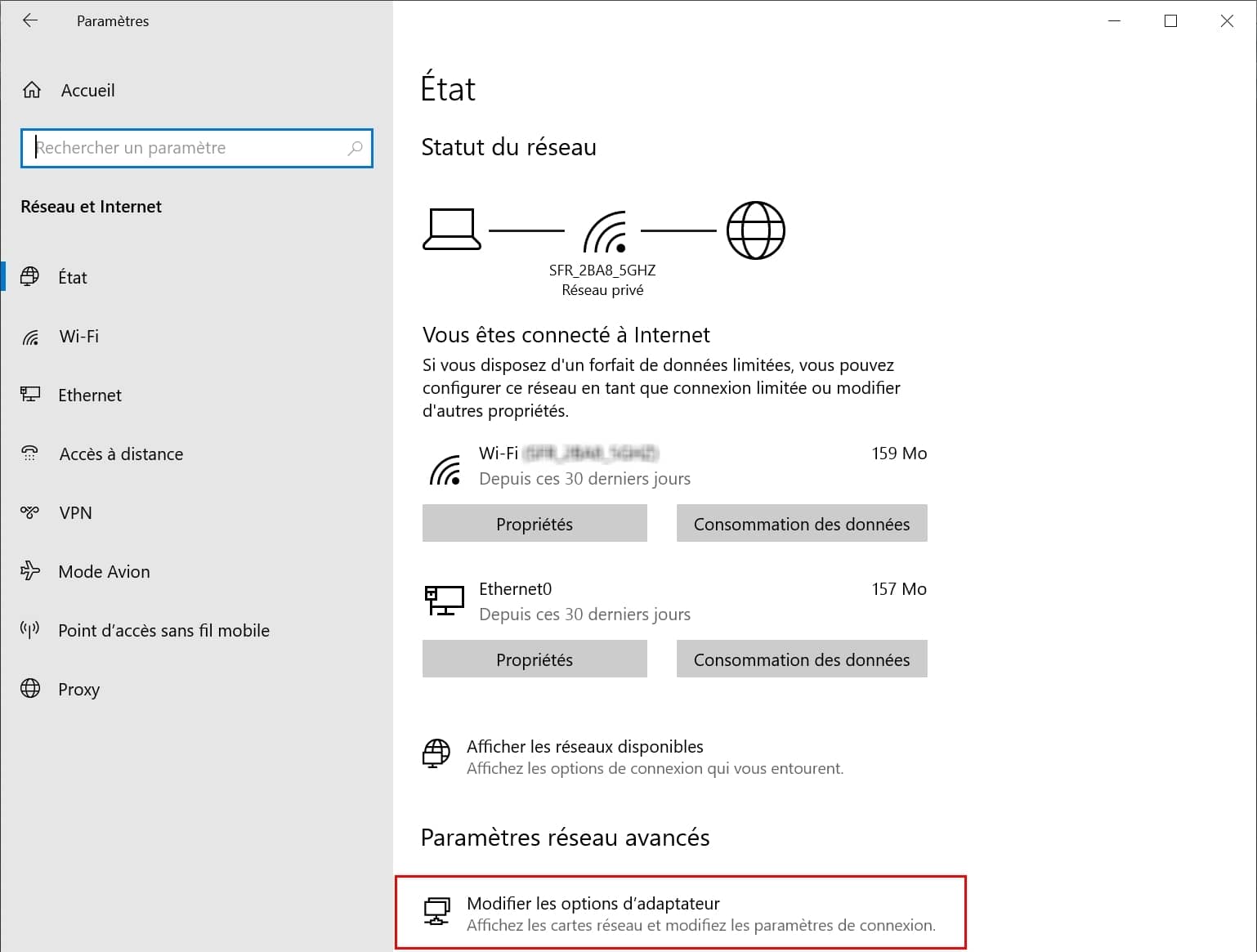 - Ensuite, cliquer sur Modifier les options d’adaptateur,