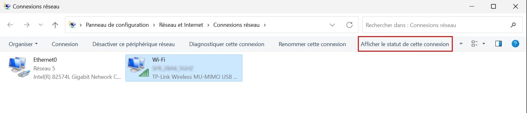 - Puis cliquer sur Afficher le statut de cette connexion,