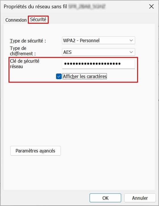 - Pour afficher votre clé Wi-Fi, cocher la case Afficher les caractères,