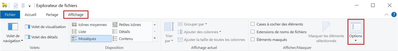 - Puis au niveau du ruban, cliquer sur le bouton Afficher,