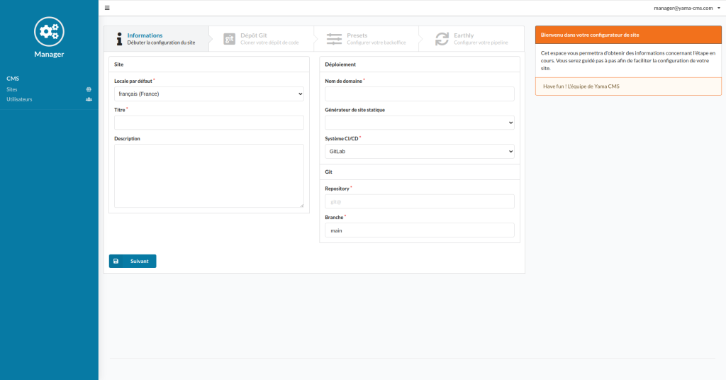 Un CMS (Système de Gestion de Contenu) est un logiciel en ligne grâce auquel il est possible de créer, de gérer et de modifier facilement un site web, sans avoir besoin de connaissances techniques en langage informatique. Yama CMS